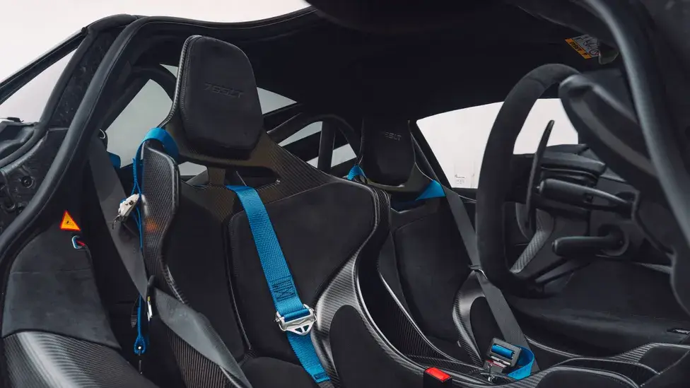 Aerodynamika McLarena 765LT to najwyższa szkoła iżynierii – każdy element z włókna węglowego ma swój dedykowany cel. Przód z wielkim splitterem (obniżonym o 5 mm) i agresywnymi wlotami, ostre progi boczne i gigantyczne tylne skrzydło (20% większe niż w 720S) z trzema trybami (maksymalny docisk, DRS na prostej i “hamowanie powietrzne” przy gwałtownym zwolnieniu) generują aż ~25% więcej docisku niż standardowy McLaren 720S. Dzięki temu choć LT ma napęd tylko na tył i semislicki Pirelli Trofeo R, klei się do asfaltu jak przyssany.