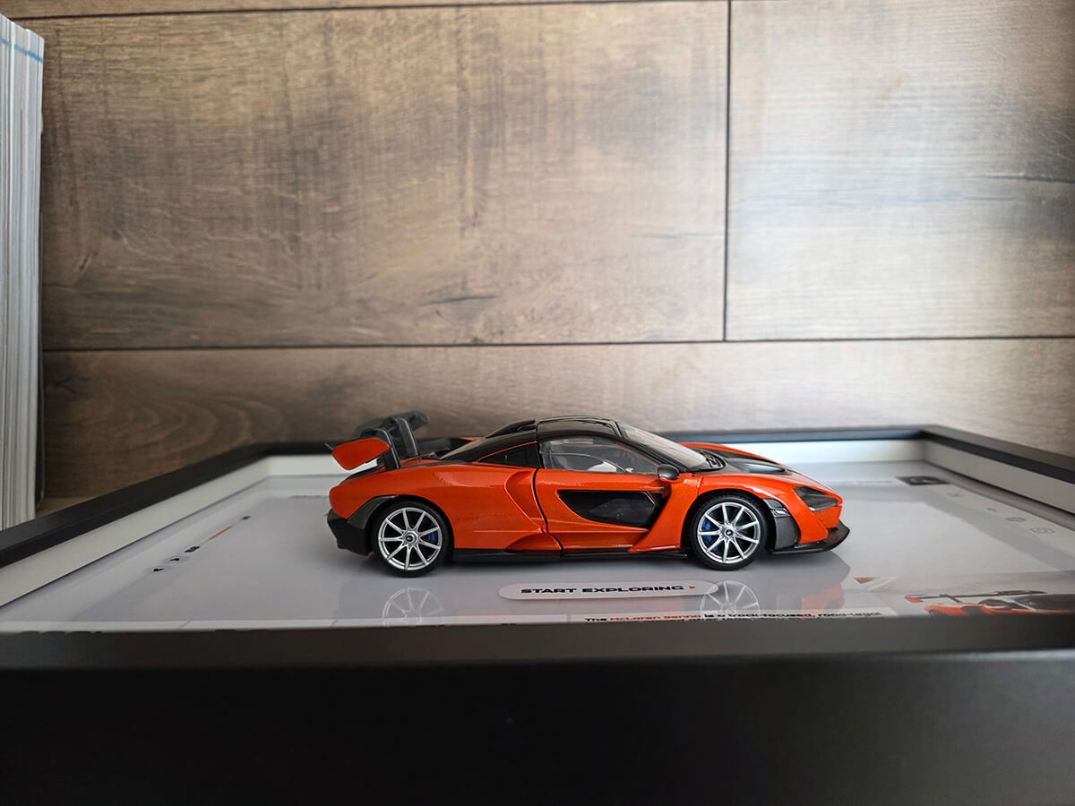 Marzysz o tym, aby móc podziwiać w domu prawdziwy supersamochód? W DREAMS4U spełniam Twoje motoryzacyjne fantazje – prezentuję unikalny obraz 3D z modelem McLarena Senna w skali 1:24. Dzięki tej dekoracji każdy entuzjasta motoryzacji poczuje się jak w luksusowym garażu! Niezależnie od tego, czy realny McLaren stoi już w Twoim garażu, czy dopiero o nim marzysz – możesz powiesić ten obraz na ścianie lub postawić na biurku, by cieszyć się jego widokiem każdego dnia. Opcjonalne podświetlenie LED doda mu natomiast dodatkowej magii, a Ty staniesz się bohaterem prawdziwego motoryzacyjnego snu!
