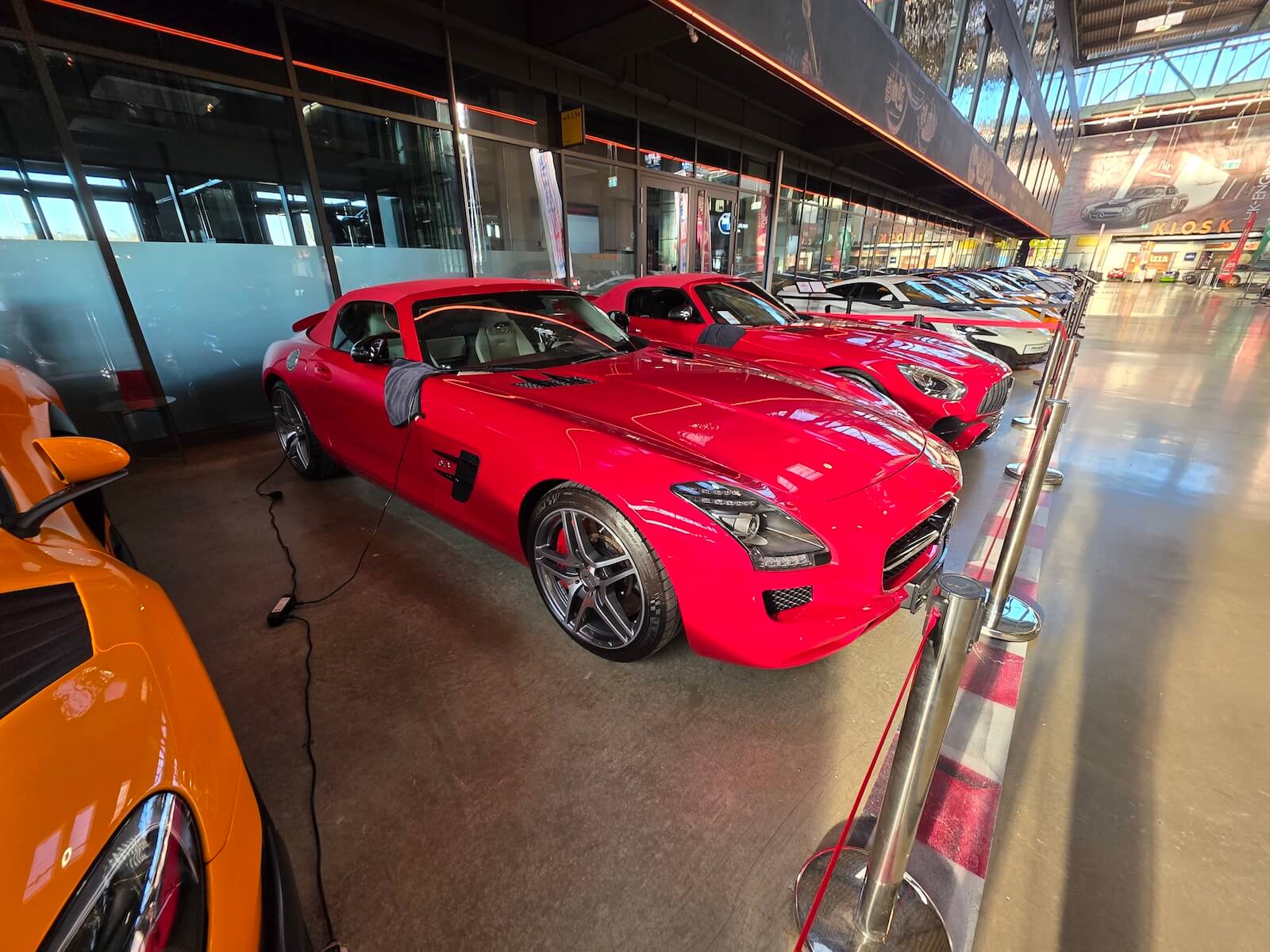 Będzie nuda – niekoniecznie! Motorworld Monachium mieści się w zabytkowej hali dawnej lokomotywowni przy Lilienthalallee. To ogromna, ponad 100‑letnia konstrukcja: 185 metrów długości, 90 metrów szerokości i 18 metrów wysokości. Przez dziesięciolecia naprawiano tu lokomotywy, a dziś zachowano przemysłowy klimat budynku. Wnętrze wypełniono samochodami – można poczuć się jak w wehikule czasu: od zupełnie klasycznych pojazdów aż po najnowsze egzemplarze. Motorworld reklamuje się jako „hub dla entuzjastów motoryzacji i stylu życia” – prezentuje około 30 luksusowych marek samochodów! W 111 przeszklonych „boksach” pokazują się kolekcjonerskie perełki od zabytkowych Mercedesów i Porsche po supersamochody jak Bugatti czy Ferrari. Widać tu pasję do motoryzacji na każdym kroku – a my trafiliśmy prosto w samo serce tego świata.