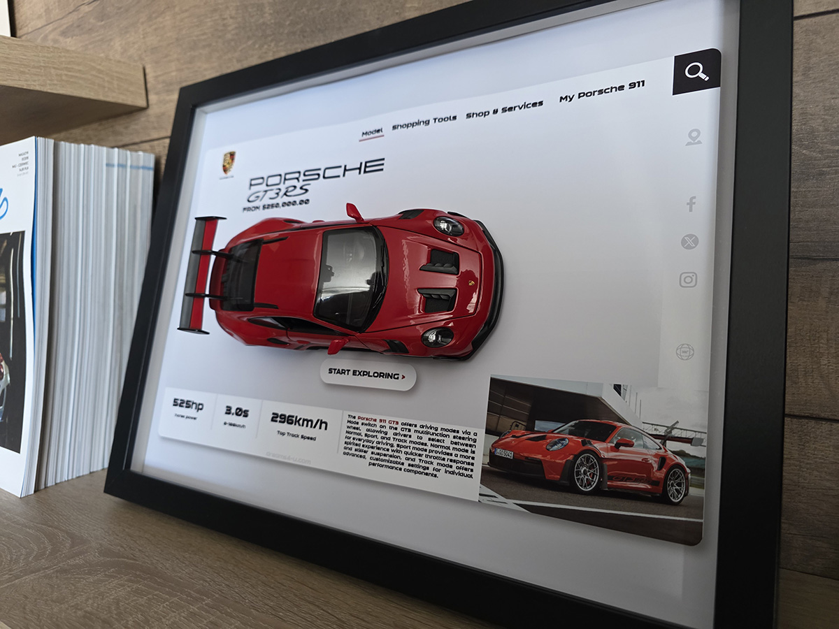 Porsche 911 GT3 RS w ramie obrazu 3D